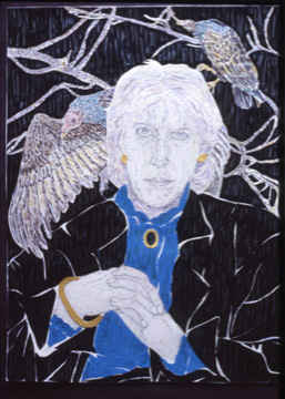 Cynthia Kemerer paints portraits of her personal acquaintances, juxtaposed with symbolic attributes taken from a wide range of cultural, historic and natural sources.